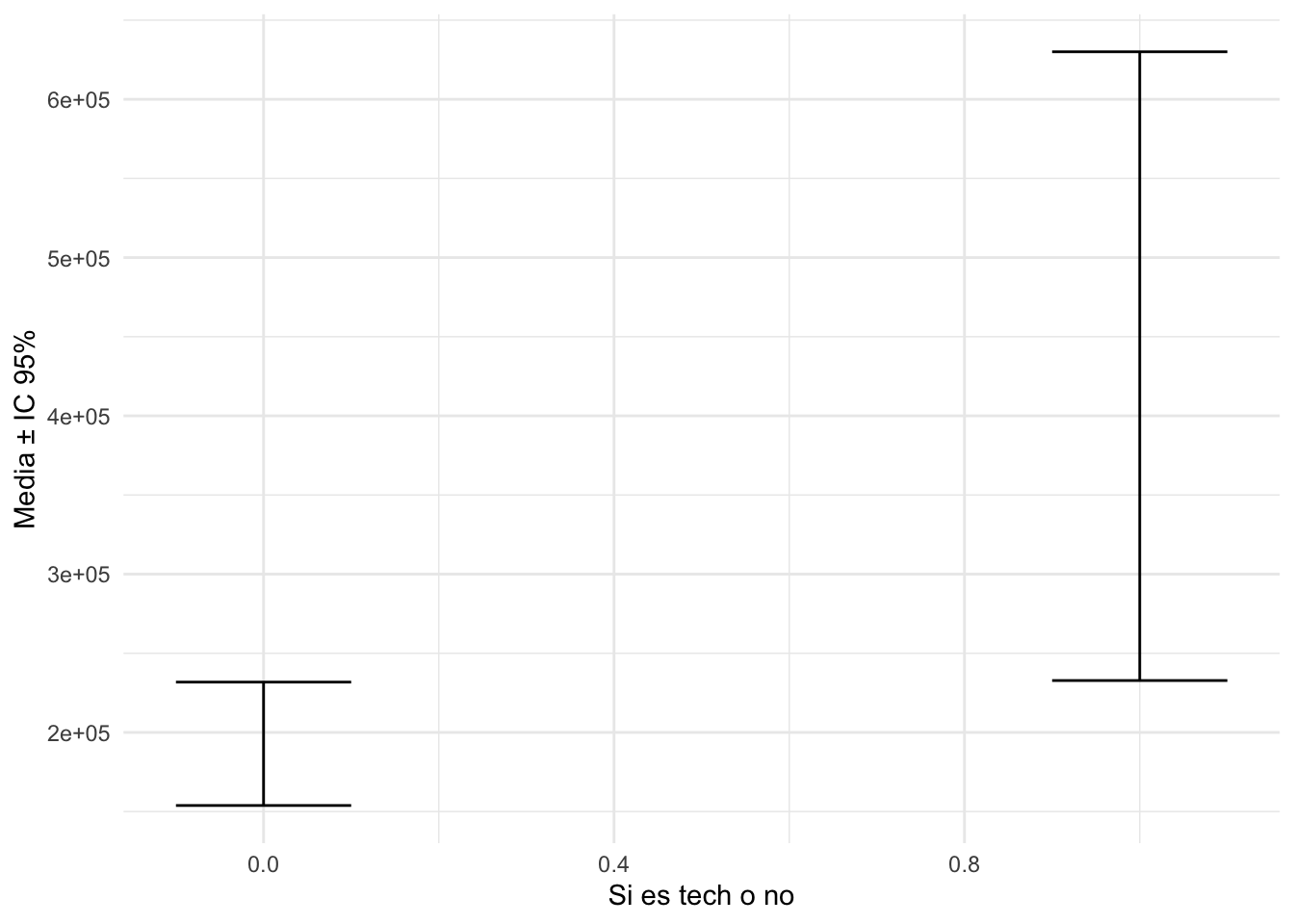 labs(x = "Si es tech o no", y = "Media ± IC 95%") +